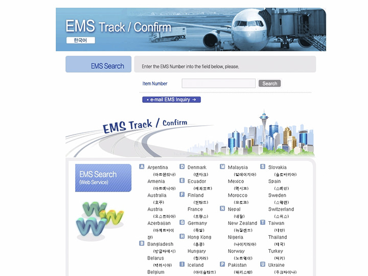 韩国EMS官方网站:http://www.epost.go.kr/main.retrieveMainPage.comm (韩语)