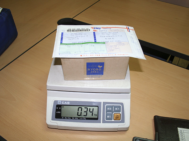 | 重量 | 邮费(韩元) | 重量 | 邮费(韩元) | ||