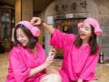 羊角头巾保护头发和自拍!对啦,再跟小伙伴体验一次韩剧场景——汗蒸房内“脑袋磕鸡蛋”哦!