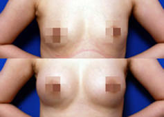 丰胸手术可以将由生理盐水和硅胶为原料制作的人工乳腺填入乳房,也可以将脂肪和玻璃质酸注入乳房。填入人工乳腺的方法虽然能维持一段时间,但像假体溃破等问题令其在安全方面与其他手术相比风险性较高。近年来将自体臀部及腹部的脂肪进行吸脂手术,再将其注入乳房丰胸的方法,能再塑女性自然优美的曲线,因而受到热捧。 ![]() 注入脂肪丰胸的示例(上:手术前、下:手术后) |