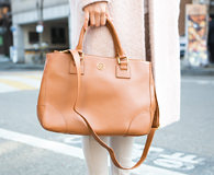Na-yeong一身的打扮都给人温暖的印象。嫩粉色的呢子大衣在今年入春时购买,浅棕色的“汤丽柏琦”包包也搭配得很到位。红唇是饰品是这天打扮的亮点。Na-yeong说她自己最喜欢的服饰品牌为“VANESSABRUNO”。