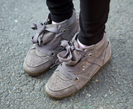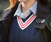 Yu-ra仿佛就像韩国购物网站上经常出现的漂亮女生。在她没有说出年龄时,小编还以为她只有十几岁。“V”领小毛衫里面露出的衬衫领子很有学院风。Yu-ra说脚底这双鞋子穿起来很舒服。她平时最喜欢在“时代广场”购物。