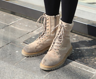 身材修长的Ye-ji是一位模特。染成浅粉色的头发和藏蓝色夹克衫看起来与这天温暖的天气很搭。最近很多韩国明星及时尚人士都开始流行把头发剪为齐短发,显得很干练。那双无论男女都非常适合穿的军靴也是时尚界的一大热款。Ye-ji主要选择在网上购物。