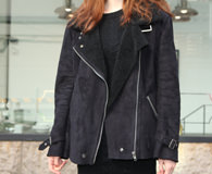 Jin-seo和朋友Ye-ji今天为参加模特选拔赛而来到林荫道,Jin-seo这天的打扮主要以黑色为亮点,针织衫连衣裙、外套和鞋子都是黑色,显得非常帅气。“ZARA”是Jin-seo最喜欢的品牌之一,接受采访时她也拎了一个“ZARA”购物袋。