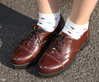 采访当天恰好是Na-eun从学校回家的日子,所以特意打扮了一番。Na-eun说这天穿着的一身主要走的是可爱风。在网店“Stiu”购买的棕色皮鞋和白色袜子很有少女风。耳朵上闪闪发光的银色耳钉在“METROCITY”购买。