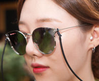 身材高挑修长的Yun-jin,穿着宽松的黑色T恤及高腰短裤,风格显得随性轻松。夏天到了,现在的年轻人喜欢带上墨镜来演绎时尚,Yun-jin的太阳眼镜是在“A LAND”购买。她本身喜爱的品牌有“ZARA”和“H&M”。除此之外,她最爱逛街购物的地方就是首尔的新沙洞林荫道了。