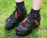 Chae-rim 背着一款配任何衣着都百搭的黑色包包,而她的包包是在网店“ANDSEEYOU”购买的。仔细看她的鞋子,有着发亮材质的黑色皮鞋,散发着一股复古学院风,给人一种冷静又优雅的印象。走学院风的Chae-rim羞涩地微笑着,流露出一种甜美又乖巧的学生风范。