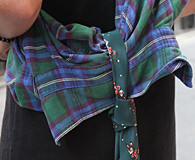 今天穿衣的亮点在于法兰绒格纹衬衣和小领带组成的“小尾巴”。Min-ho说他喜欢充满时尚感的店铺“A LAND”,是一个经常收集各种时尚元素的个性派。用大框眼镜来塑造小脸效果也备受首尔年轻人的热捧。