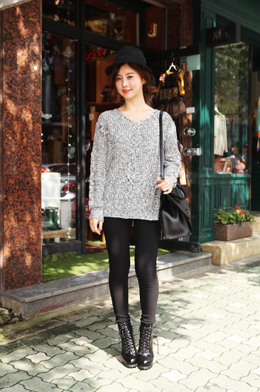 在美术大学就读西洋画专业的Gyeong-min,今天穿着一袭短短的翠绿色连衣裙,并搭配同色系的首饰,散发出清新爽快的味道。头发的颜色和造型在大街上也尤其夺人眼球。而硬朗风格的项链恰到好处地进行点缀,可爱中流露着帅气。