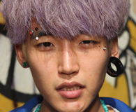 Seong-ryeol在位于弘大的个性美发造型店“PUNK SHALOM”担任美发师,他通过各种扎孔饰品来展示自己独特的风格。胸前的女式挂饰和个性小包也与整体造型搭配协调,引人注目。