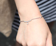 碰到Ah-ra的时候,她正和男友一起在街边买冰淇淋。简单的条纹连衣裙和脚下蓝色的匡威帆布鞋衬托出青春的学生气,而肩上挎的布袋则是在网上购买后重新亲手改制的。手链来自于意大利品牌“Metrocity”,简单中透着优雅气质。