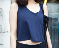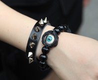 走在街上,一身朋克风的Su-mi吸引了我们的视线。设计独特的手链购于永登浦,帽子则是很受韩国艺人喜爱的美国“Carhartt”品牌经典款。整体黑色的搭配因为俏皮的露脐设计而表现出更多轻松感。