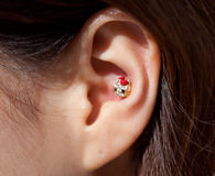 在弘大“想漫步的小径”附近,我们遇到了与双胞胎姐姐一起出来逛街的Hye-won。合身的牛仔裤搭配露脐的白色T恤,脚下的短帮帆布鞋刚好露出脚踝,看上去充满活力,厚厚的外套看上去也很保暖。“Hello Kitty”的耳钉购于诚信女子大学附近。