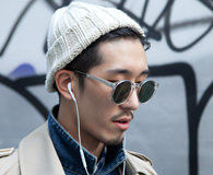 来弘大附近见朋友的Min-su是一名职业模特儿,仔细看他的搭配会发现很有层次感。棉T恤和格子衬衫套一件“VINTAGEPLUS”品牌的牛仔衫,系第一颗扣子立领的细节使搭配更加立体。来自英国伦敦的设计品牌“SPITFIRE”太阳镜也是今年潮人必备的单品之一。