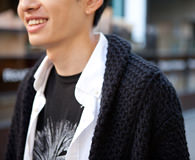 身材瘦削的Seok-won今天是专门到弘大来做头发的。深色牛仔裤与英国经典制鞋品牌“其乐(Clarks)”的黑色翻皮皮鞋搭配得恰到好处,购于“ZARA”的粗线小翻领毛衣为整体加分。问道平时最喜欢的穿衣方式,他回答说首先是舒适,但一定要有自己的风格。