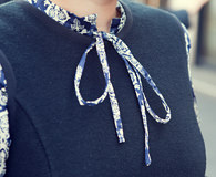 短款碎花裙是这个季节不可缺少的单品,不过Min-jeong今天还是把连衣裙穿出了不一样的感觉。圆顶小毡帽和购于狎鸥亭的“BLIND+”太阳镜搭配脚底的高帮平底靴,为她增添了不少帅气和清新,颈部的蝴蝶结处理也为整体增添了些俏皮。