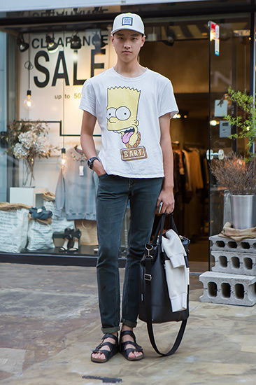 这位英气的小帅锅正在服兵役,曾经是小有名气的模特,今天刚好休假,跟朋友到弘大逛逛。虽然最近都是穿着军装的,但以前他很喜欢到东大门的斗塔里购物。难道模特们钟爱东大门?