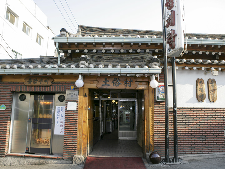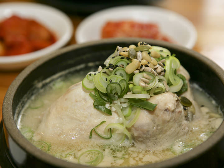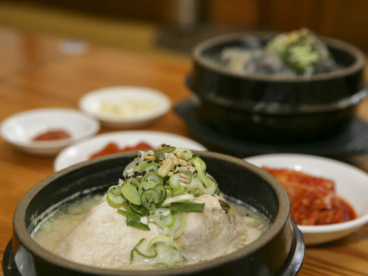 无人不晓的参鸡汤名家“土俗村”位于韩国著名景点景福宫附近,是一家时而会需要排队等候就餐的超人气美食餐馆。韩屋构造的“土俗村”让每一位到店顾客感受到了在韩屋里就餐的乐趣,榻榻米座位共可容纳400人。店里名品招牌参鸡汤是将鸡肉和糯米、人参、南瓜籽、板栗、大枣等食材一起熬制。入口即化的鸡肉配上浓郁的汤底让每一个客人都回味无穷。除了参鸡汤外,乌骨参鸡汤、漆鸡汤、海鲜葱饼等都是人气菜品。