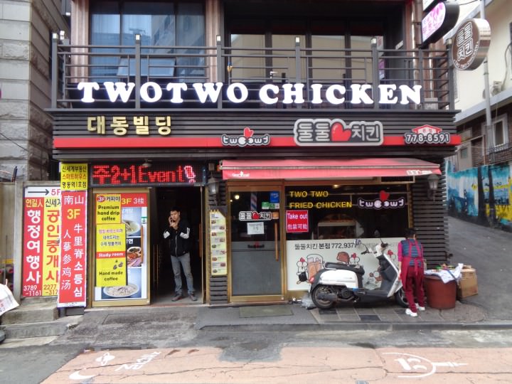 韩国众多炸鸡品牌中,“twotwo炸鸡”人气非凡。以“明洞总店”为首,twotwo炸鸡在包括东大门、江南等游客聚集地的大街小巷都设立了分店。明洞总店位于地铁4号线明洞站附近,不论会不会韩语都能轻易找到这里。人气菜单“原味炸鸡”以蒜香入味,通过特殊研发的压力炸鸡炉炸出来的鸡肉不仅保持了鸡肉的鲜美味,同时还提高了肉质劲道的口感。裹了特制酱料的“调味炸鸡”同样也深受好评。如果想要一次吃两种口味的炸鸡,推荐点“半半炸鸡(原味炸鸡(半只)+调味炸鸡(半只))”。店内提供打包外带服务,可以将炸鸡打包带回酒店吃。