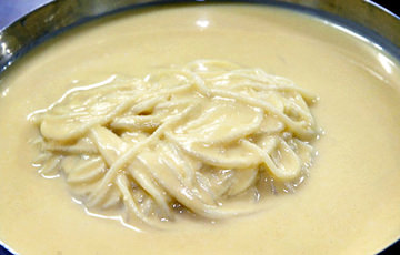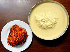 说起夏天就会想到豆浆面 在韩国,说起夏天就会想到豆浆面。以磨好的大豆做成的冷汤,色泽白皙,加上爽口又富有嚼劲的面条,是一道能让您在没有食欲的夏季惬意享受,并充分补充营养的健康食品。 “晋州家”的创始人是现任店主的父亲,一位潜心研究豆浆面长达45年的豆浆面专家。在位于汝矣岛的汝矣岛百货地下美食街,20多年来一直流传着这样一句话——“说起豆浆面就会想到晋州家”。值得一提的是,创始人为庆尚南道晋州出身,店名也因此而得名。 |