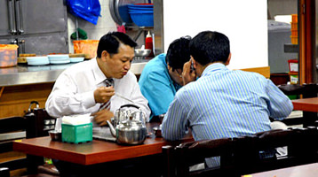 “晋州家”在汝矣岛百货地下美食街占有很大的店面面积,并且拥有两个大厅,最多能容纳约200名客人。规模如此大的店面,据说在平时午餐高峰时段几乎都能满座。 |