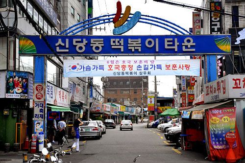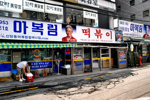 位于新堂洞辣炒年糕城的入口处,韩国现代辣炒年糕的始祖