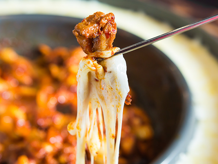 明洞著名的芝士铁板鸡连锁美食店