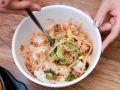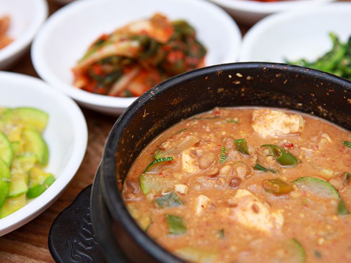 将黄豆发酵而做成的清麴酱和日本纳豆差不多,有独特的臭味,但是吃起来很香,营养价值高,易消化,因为是健康食品所以很多韩国人爱好吃清麴酱。在小剧场林立的大学路上就有以不变的味道获得人气的餐厅“麻美清麴酱”。点一个清麴酱,会有一碗煎蛋和蔬菜,还有各种小菜附送。汤中放入满满的豆腐、西葫芦、葱等,味道醇厚,喝下,会有青辣椒和辣椒面的辣味后涌上来,再次刺激味蕾。因为使用的都是新鲜的清麴酱,所以不会有不好臭味。