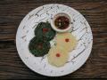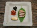 时令野生植物配上烟熏鸡肉沾着野生植物精华酱来吃的前菜