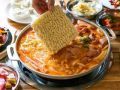 「剩什么剩部队锅」以新鲜食材与特选火腿熬出醇厚汤底,成为这道战时料理的品质革新者。明洞分店坐落商圈核心,游客可轻松体验拉面在芝士汤中沸腾的治愈场景。另外还有必点隐藏吃法:舀一勺黄油米饭浸入红汤,让碳水与油脂完成终极交融。