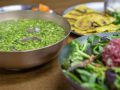 圣水洞分店坐落地铁2号线南侧东西向购物街,电视节目展板与明星签名墙印证其人气。独行客可点单人份套餐,更推荐亲朋好友一起来解锁煎饼与生拌肉等共享菜式。在木质空间里用一勺裹满芹香的米饭,尝一口酥脆海鲜葱饼,仿佛将整片菜园吞入腹中——这是都市快节奏里,最温柔的自然馈赠。