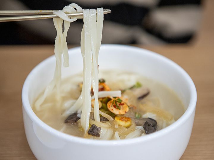 招牌「牛骨汤刀切面」以醇厚不辣的清炖汤底征服味蕾,嗜辣者必试红汤激爽的「辣牛肉汤刀切面」。搭配煎饺、白切肉、海鲜饼等经典小食,瞬间解锁满分韩食体验!