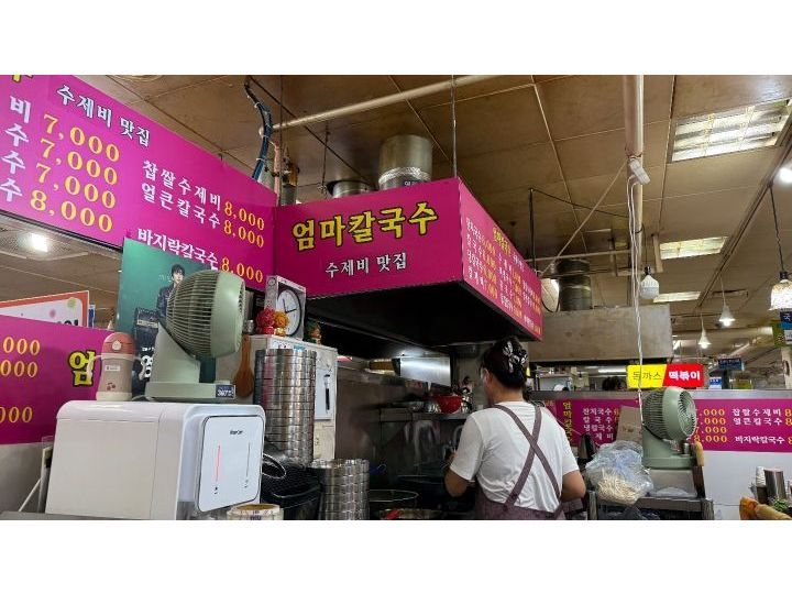 大邱西门市场地下美食,面片汤超好吃的刀切面店