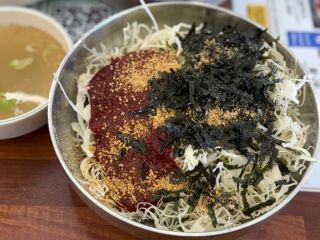 在南浦洞能品尝到丰富卷心菜的美味刀切面店