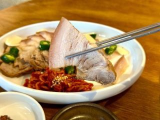 美味的刀切面和菜包肉