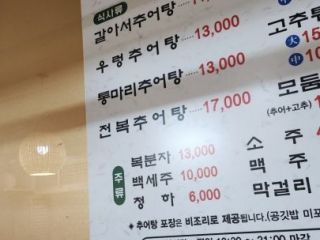 | 主要菜单 | 泥鳅汤、油炸食品等 |