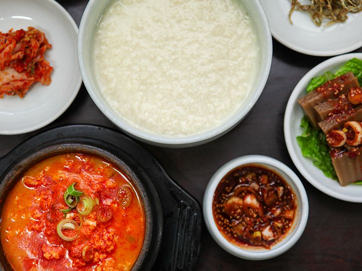 “斋洞嫩豆腐”位于韩国传统美食店林立的三清洞内,是一家专卖海水做的嫩豆腐的店。每天店内都会将新进的优质大豆碾磨做出鲜嫩的豆腐,深受附近公司白领及海内外观光客的好评。乘坐地铁3号线在安国站下车,从2号口出来后步行即可到店。餐馆隐匿在一片木造房屋聚集的小巷子里,但“酒香不怕巷子深”,每天到店就餐的人都络绎不绝。本店招牌为草堂嫩豆腐和海鲜嫩豆腐,虽然海鲜嫩豆腐的汤汁很红,但口味并不太辣。