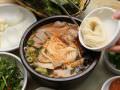 猪肉汤饭是釜山的特色美食。釜山市中心西面站附近的“猪肉汤饭街”汇聚了多家猪肉汤饭店。其中“松亭3代汤饭”成立于1946年,是十分受欢迎的美食店。因为24小时营业有很多游客造访。决定猪肉汤饭美味的关键因素就是肉汤,几种猪肉用小火炖一整天制成肉汤,猪肉在长时间炖煮后肉质格外软嫩,超出你想象。本店汤饭除了“猪肉汤饭”以外,还有“内脏汤饭”、“米肠汤饭”,同时可以点全部混合的汤饭。本店猪肉汤饭中的“白切猪肉”也是本店的人气下酒菜。本店于2020年迁店到了旁边的建筑。