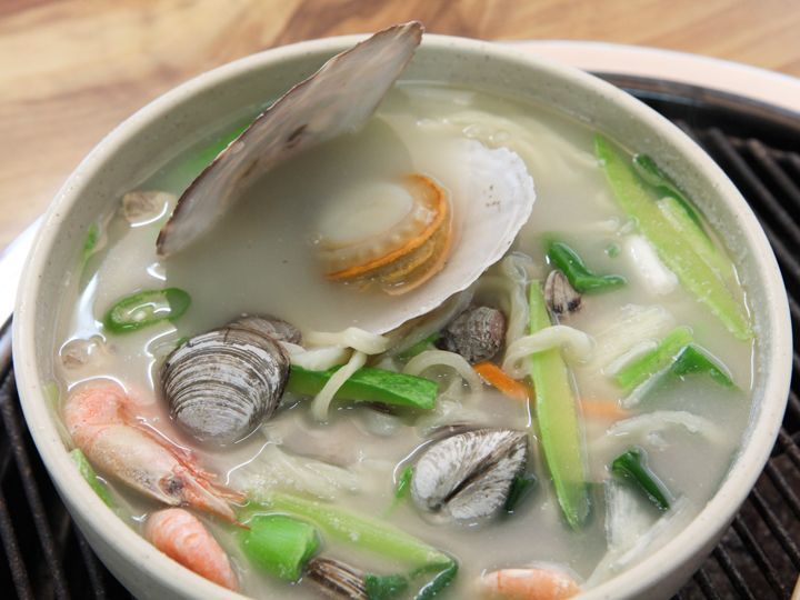 “海边松树(旧 松树生鱼片餐馆)”就坐落在仁川市海边一座开放的建筑物内,招牌菜有盛满丰富海鲜的海鲜刀切面、蒸蛤蜊、海鲜葱饼等。在这里面对着一望无际的大海,可以尽情享用蛤蜊、鲜鱼等各式海鲜。这家店离仁川国际机场车程不远,女店主的料理美味声名远播。这里的蛤蜊大部分是仁川市周边捕捉到的,蛤蜊最初在海底的地下水中生活,后慢慢移向海草群。活鱼类一周2次换水清洗,十分注重卫生。这里的蒸蛤蜊使用的是活蛤蜊,新鲜度首屈一指。