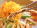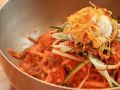庆尚南道晋州的乡土料理,晋州冷面名家“河莲玉”,从晋州高速公交客运站乘坐出租车前往最为便利。用鲜鱼、牛骨和牛肉一同熬制的汤汁配以晋州冷面,其中摒除鱼腥味,只留清爽口感。加入煎肉饼的晋州冷面配以香辣的酱料,鲜红的色泽让人无法转移开视线。面绝对没有看起来那么辣,当然也可以根据个人口味添加的酱料配合面条一起搅拌后品尝,味道绝赞。这家店还有晋州臻稀美食生拌牛肉拌饭等美食。
