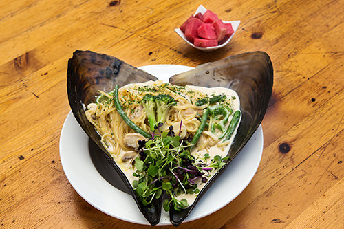 “青春餐馆 未来少年”是一家东洋式融合餐厅,从地铁3号线新沙站3号出口步行约2分钟即可到达。店铺的装修充满童趣,摆着各国啤酒招牌、未来少年巴士站牌、烤地瓜炉、玩具人形及投币游戏机等让人勾起童年的回忆的物件。本店让人赞不绝口的餐品有黑啤酒烤猪蹄,用14种香料腌制的猪蹄经过烤箱高温烤制后,皮脆肉嫩,非常有嚼劲。还有鲜带子奶油意大利面,用大大的鲜带子壳作为盘子,放入西兰花、豆角等多种蔬菜和鲜带子的奶油意大利面奶香很浓,又好吃又有趣。更令人新奇的是,这里还有两条可爱的宠物驴,从每个细节都体现出趣味来。