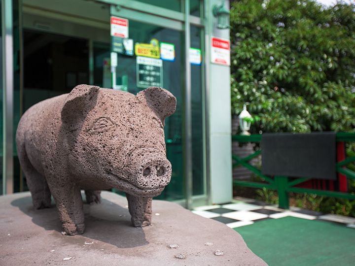 说起济州岛美食,黑猪肉当属第一!位于新济州地区的“黑豚家 济州总店”是济州岛排名第一的黑猪肉美食店。从济州国际机场打的到“黑豚家”,仅10分钟左右就可到达。烤黑猪鲜肉是本店的人气菜品,烤得外脆内嫩的五花肉蘸着鳀鱼酱一块儿吃。鳀鱼酱的鲜美中和了猪肉的油腻,海的鲜味与山的野味同时在嘴里回绕,香与咸搭配得正好,美味难以抵挡。烤猪酱肉是本店另外一个招牌菜,用猪骨浓汤、甘草、大枣等多种材料调制出调料腌制的黑猪肉,味道层次丰富,美味无比,深受中国游客的喜爱。如果来济州旅游,想要尝尝黑猪肉味道的话,“黑豚家”绝对是你不二的选择!