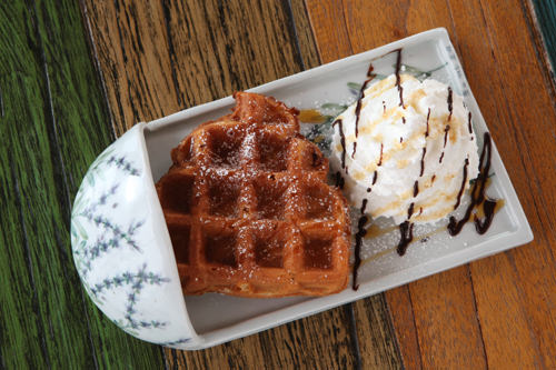 生奶油便便华夫饼 (华夫饼+美式咖啡或橙汁套餐 8,000韩元)