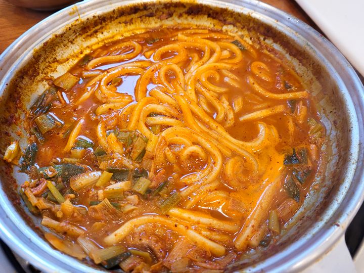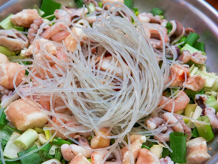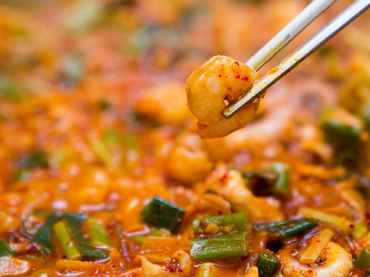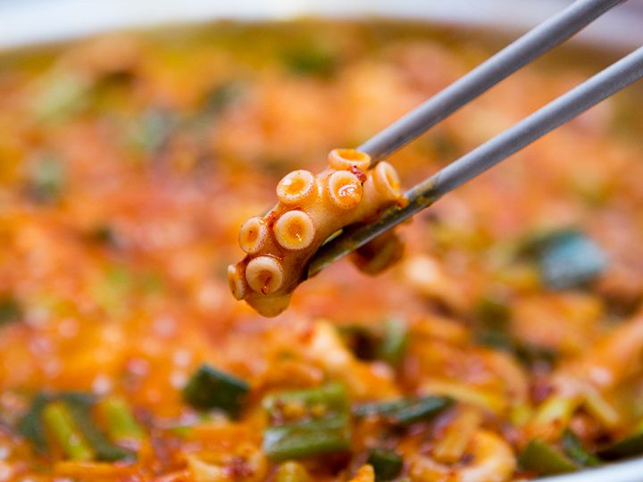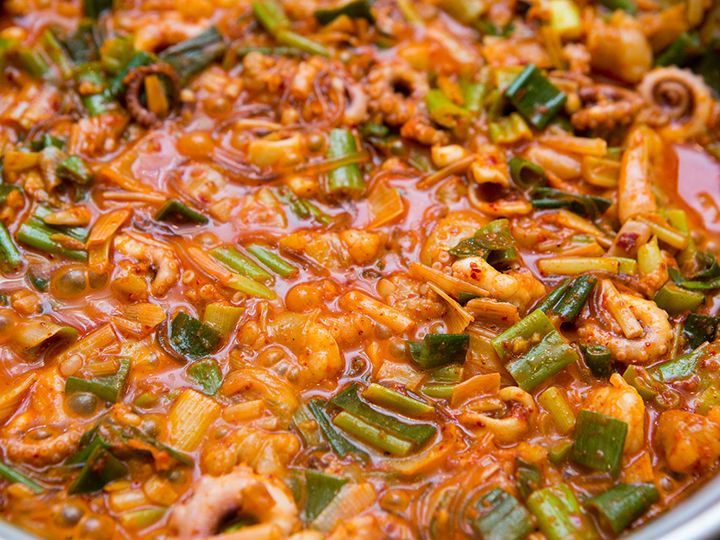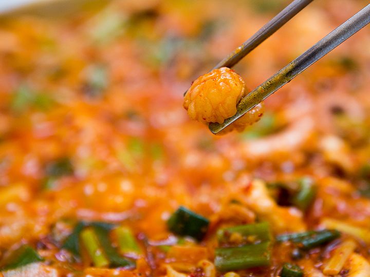 辣炒章鱼鲜虾肥肠 12,000韩元/1人份 ※图片为2人份