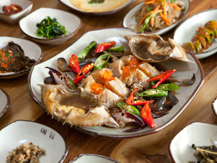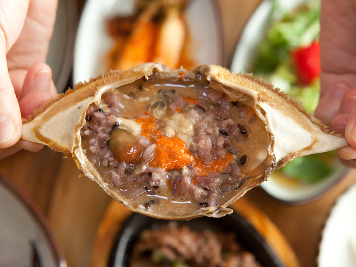建国大学附近的酱蟹韩定食美食店,使用自家菜园种植的天然食材