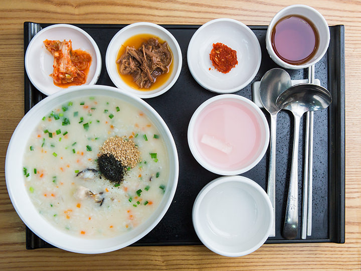 韩国的粥一般是用大米或糯米粉加入水或高汤熬制而成。韩式粥口味清淡且有助消化,多在腹痛、消化不良时食用。在专门的粥铺可以品尝到用海鲜或蔬菜等各种原材料做成的粥,品种多样,应有尽有。到韩国旅游时,点一份粥作为早餐再合适不过,营养又美味,一个人到店时也可以吃。