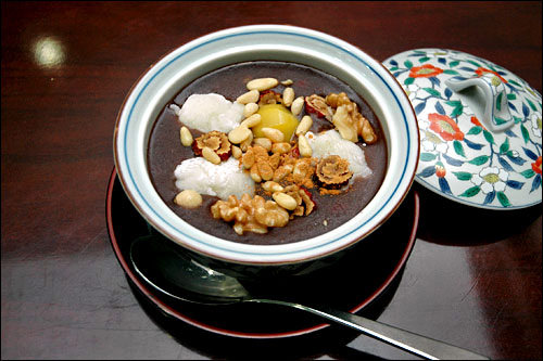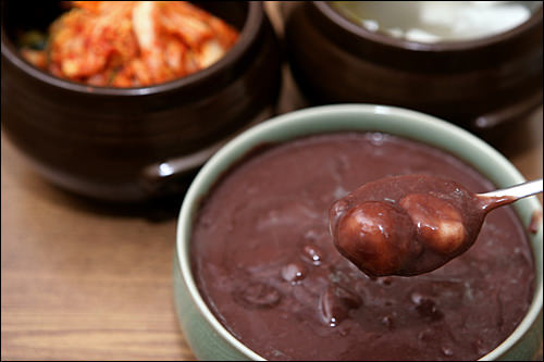 用红豆熬制的粥不管在什么时代,总是备受大众喜爱。红豆粥分为不甜的、和常被当做点心或零食吃的加糖的两种。里面还加有圆圆白白的小丸子的红豆粥,在韩国被当做是冬至辟邪的食物,家家户户都会吃。 | ||||||