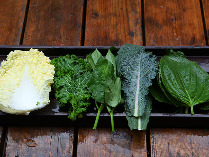 (左起) ・红梗叶甜菜(적근대) ・高菜(적겨자) ・油菜(청경채) ・生菜(청상추) ・羽衣甘蓝(케일) ・杂交生菜(쌈추) ![]() |