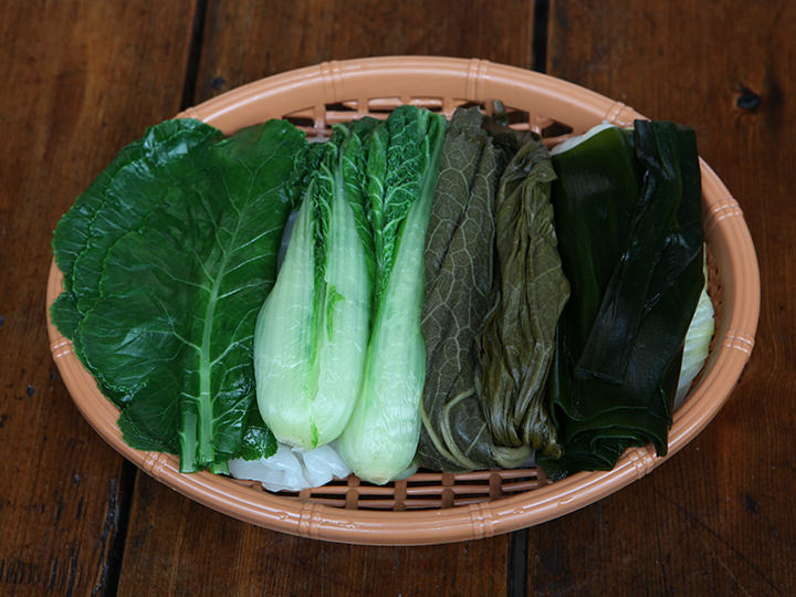 (左起) ・白菜(배추) ・芥菜(청겨자) ・当归(당귀) ・西兰花叶(뉴그린) ・苏子叶(깻잎) ![]() |