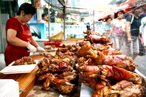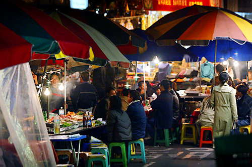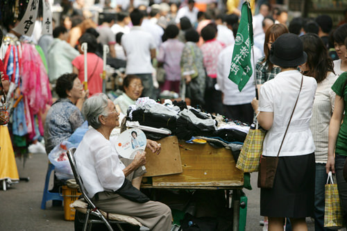 这种挤在路上买卖的场景也只有在南大门才能见到